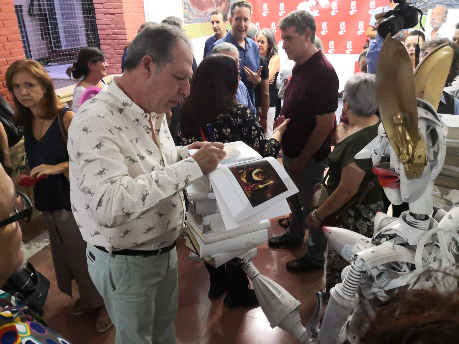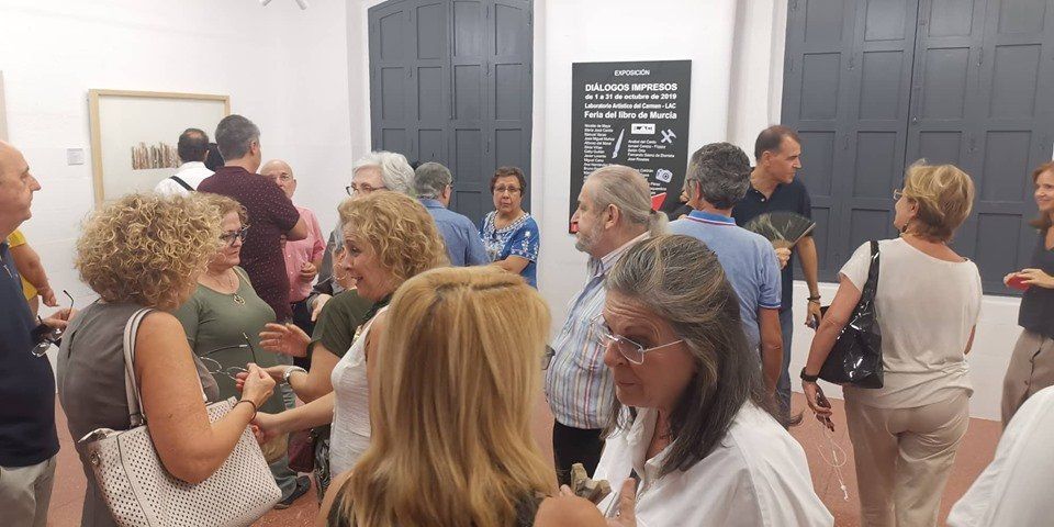 Con el sugerente nombre de “Diálogos impresos”, mi amiga Santi García Cánovas comisaría de nuevo esta segunda edición de una exposición colectiva que recoge la obra de un excelente grupo de artistas pintores, escultores y fotógrafos para dar comienzo a la Feria del Libro en Murcia.