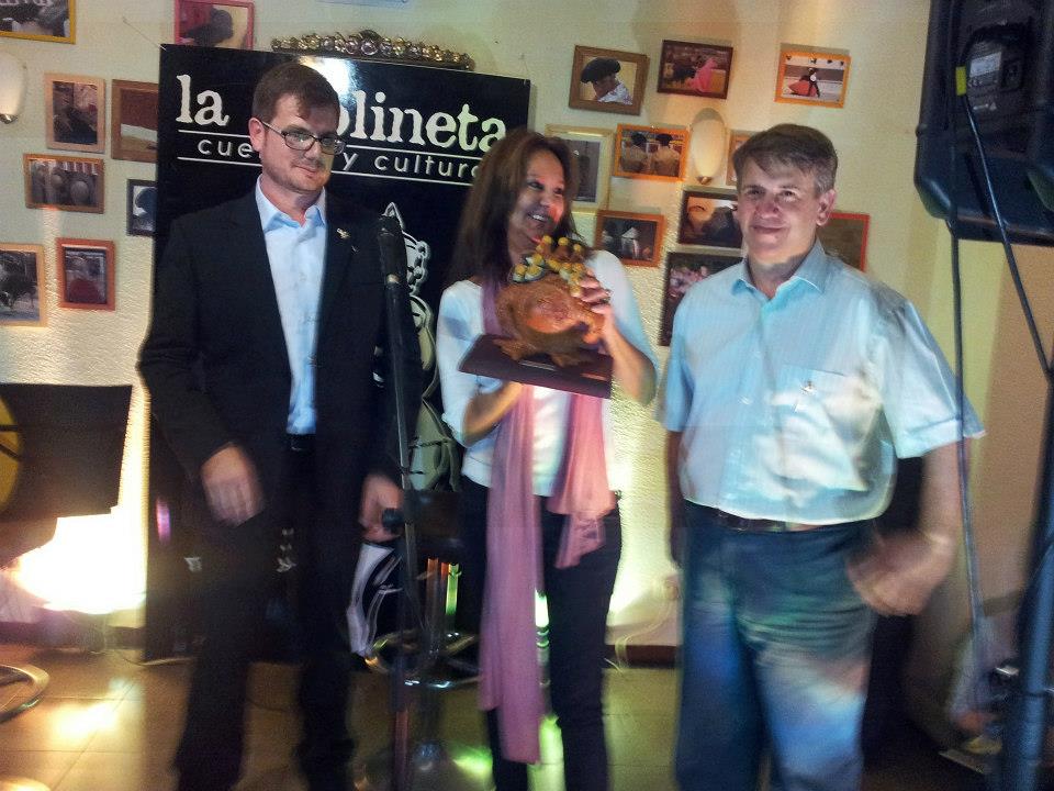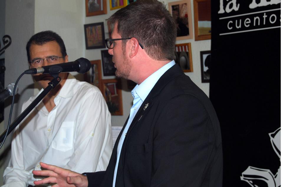 Los integrantes del grupo la Molineta Literaria: Paco López Mengual, Pablo de Aguilar y Julia Robles con Manuel Vacas