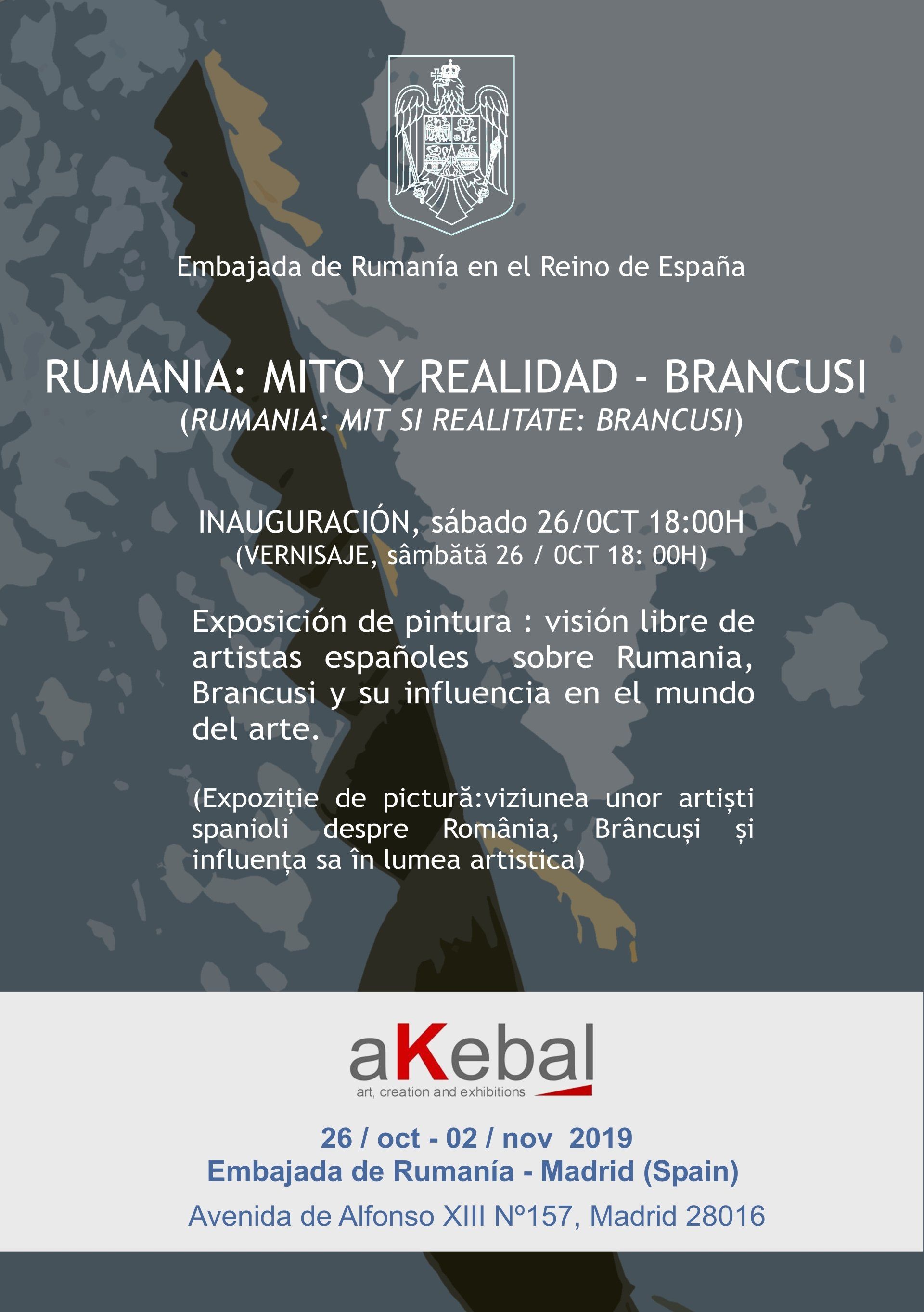El grupo aKebal presentó en Madrid la exposición dedicada a Brancusi en la Embajada de Rumanía. Un entrañable recibimiento el que se brindo al grupo de artistas en la jornada de fusión cultural que se celebro el 26 de octubre. En la exposición obras de Maria Jose Caride Vazquez, Domingo Martinez Garrido, Gaby Guillén, Santi Garcia Canovas, Gelu Perez Soto, Antonio Pellicer Zaragoza y Manuel Vacas. La presentación corrió a cargo del agregado cultural de la embajada y de Luminita Pigui Neagoe organizadora del evento.